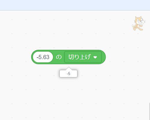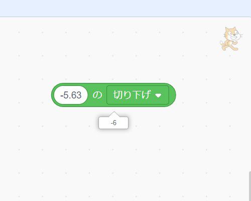 Scratch(スクラッチ)の切り下げと切り上げは、正数の切り下げと切り上げと同様に、マイナス方向とプラス方向にそれぞれ切り下げと切り上げを行います。