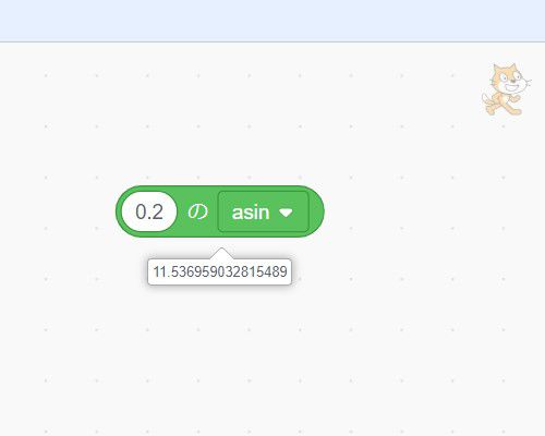 例えば、asin(0.2)は「11.536959032815489」度になります